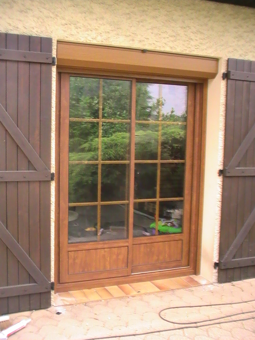 coulissant aluminium chêne doré avec « petits bois intégrés »